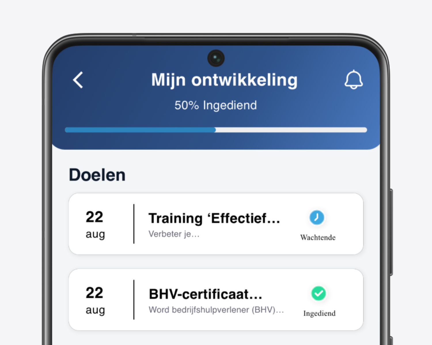 De organisatie in je broekzak. Chat met collega’s, bekijk updates en volg je eigen ontwikkeldoelen. Altijd verbonden met je organisatie, waar je ook bent.