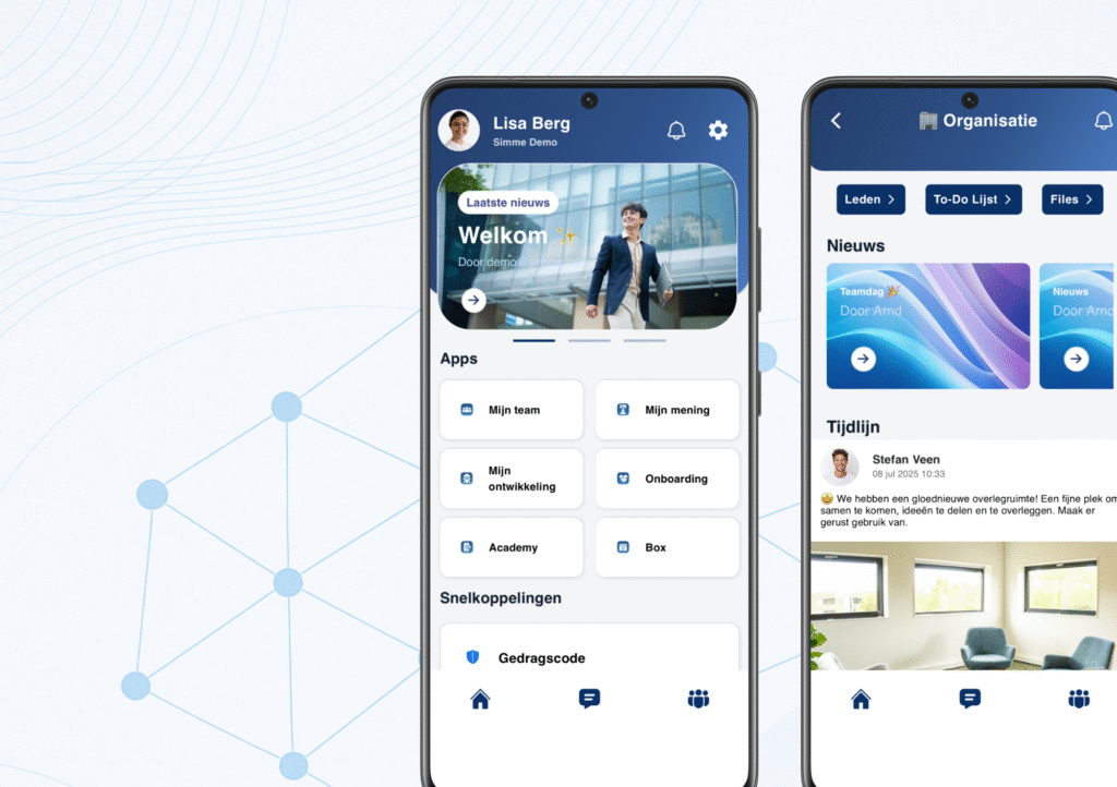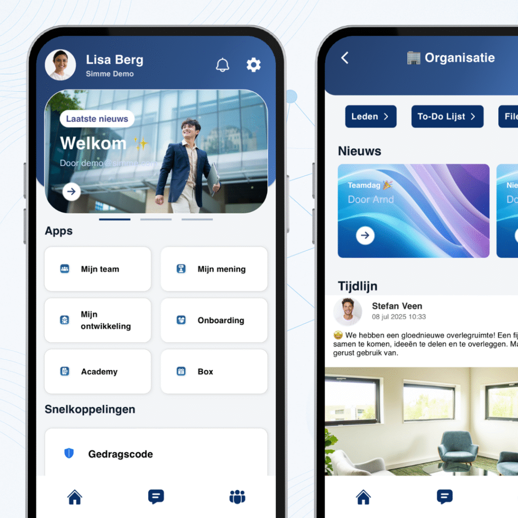 Met Simme krijg je in één keer grip op de hele medewerkersreis. We richten snel een eigen omgeving in, volledig in jullie huisstijl, zodat je direct aan de slag kunt. Nieuwe collega’s voelen zich welkom, medewerkers blijven betrokken en managers houden overzicht.