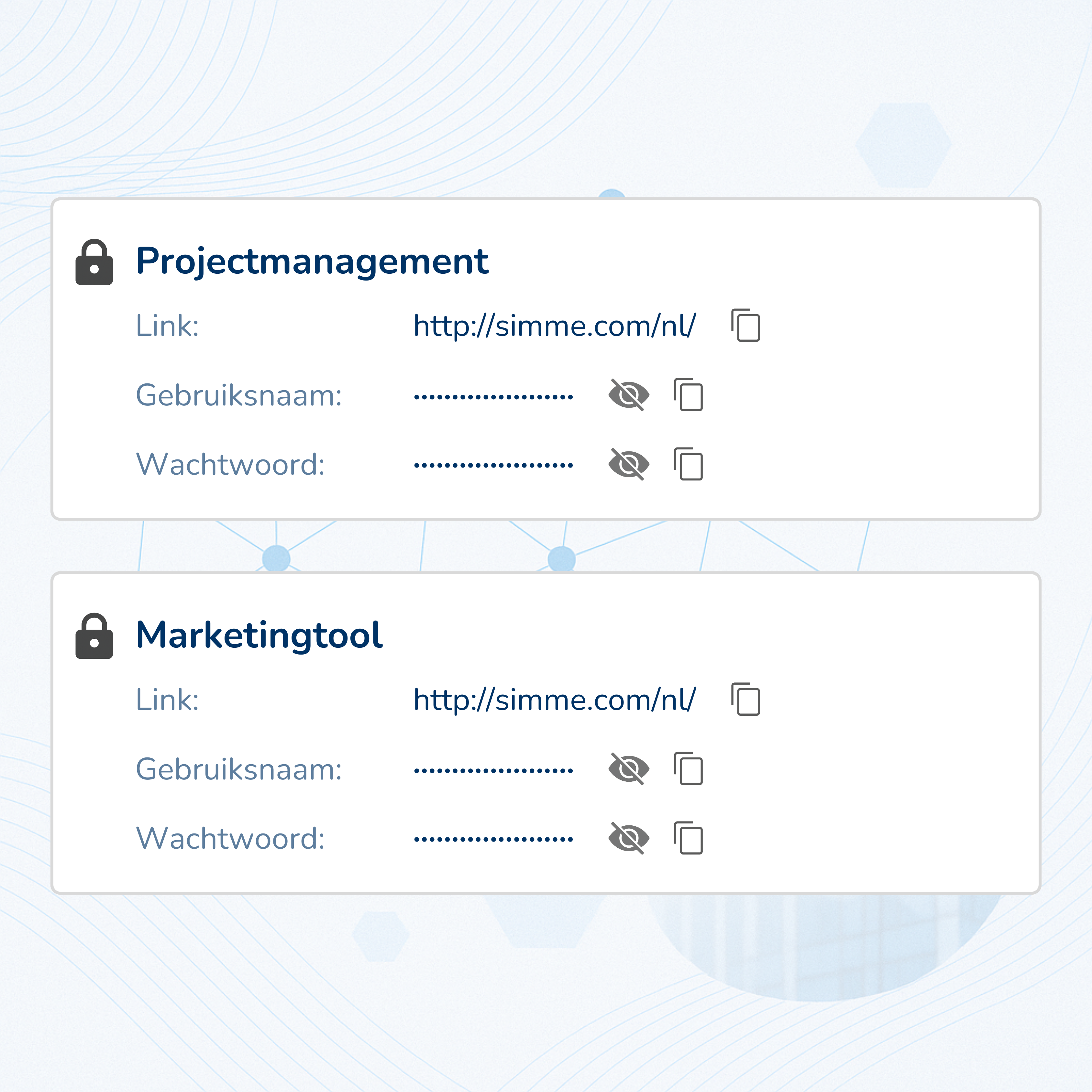 Share passwords with your team in just one click. With Simme, you manage everything simply and securely, without scattered lists or shared spreadsheets.